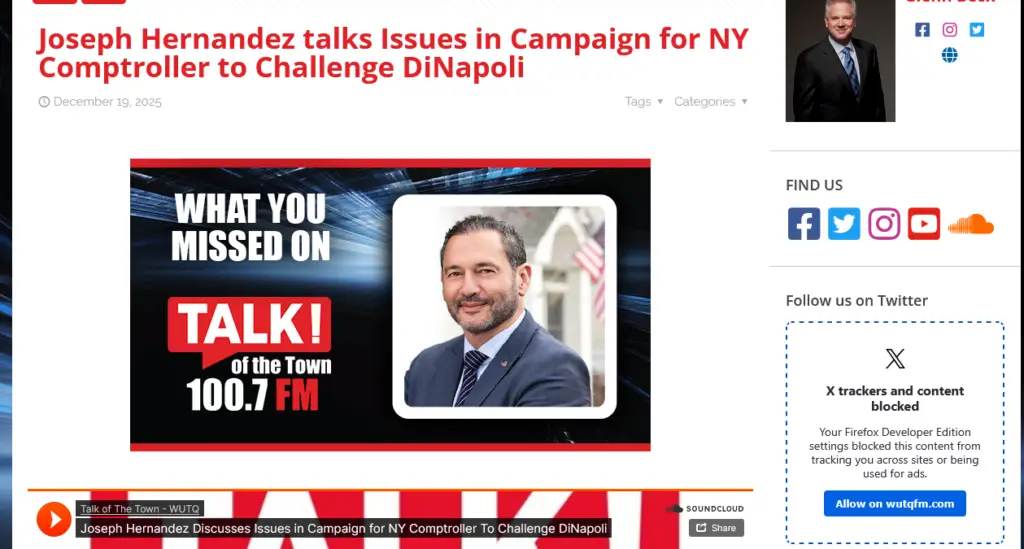 In a recent radio interview with WUTQ FM, Joseph Hernandez expanded on how he believes New York’s State Comptroller’s office should be used to protect taxpayers better and enforce accountability across state government. During the discussion, Hernandez focused on the Comptroller’s responsibility as an independent watchdog, not a ceremonial role. He emphasized that the office […]
